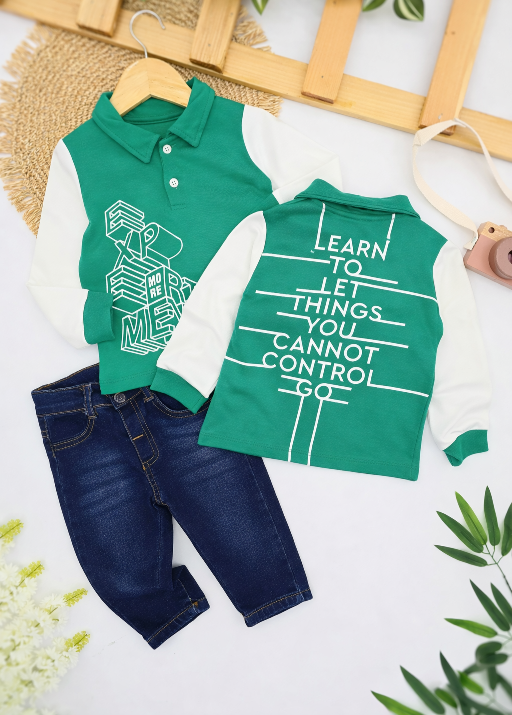 Informacije o proizvodu "Bluzica sa kragnom i farmerice za bebe dečake – zeleni komplet"