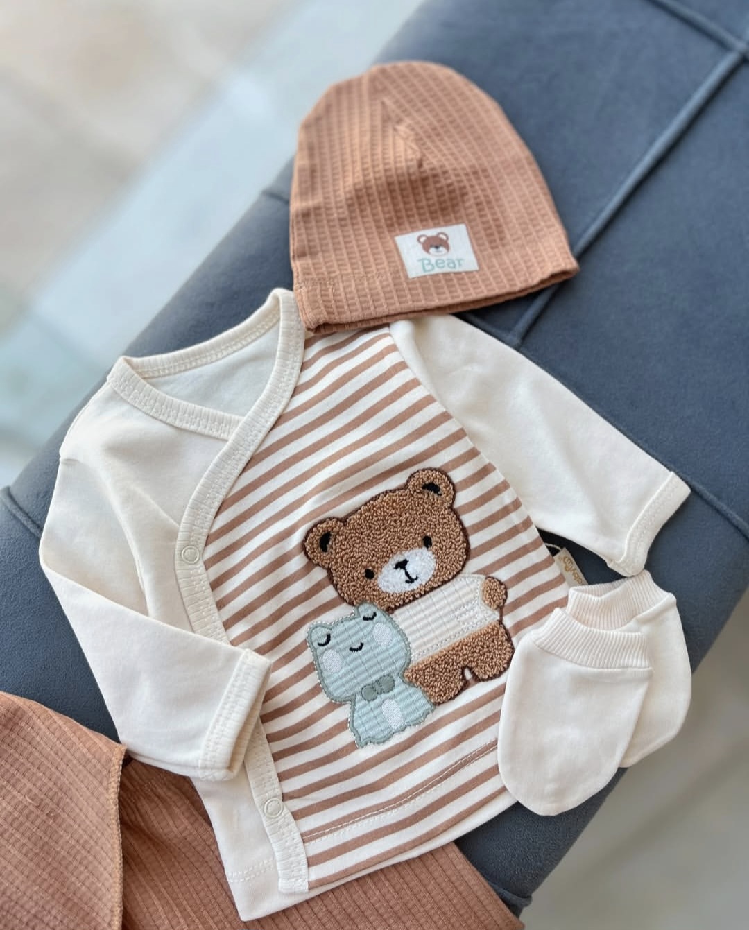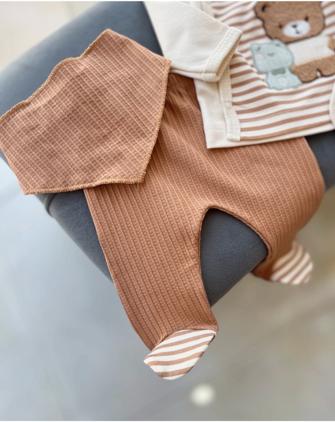 Informacije o proizvodu "Braon set za novorođenče sa medom i prugicama"