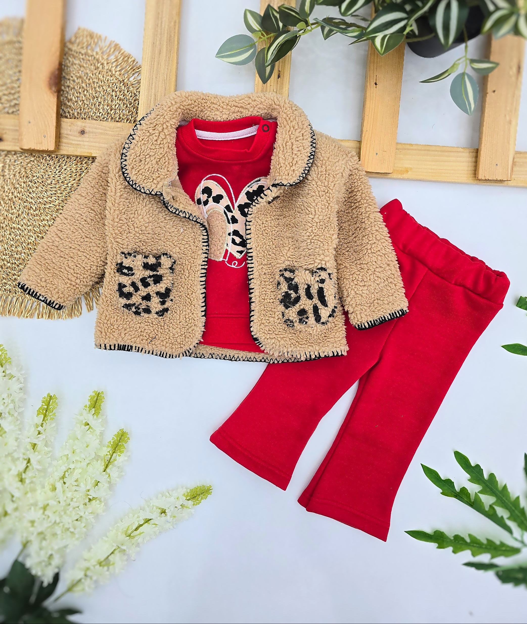 Topao i efektan komplet za devojčice koji se sastoji od mekane bundice i termo trenerke u upečatljivoj crvenoj boji. Idealan za hladnije dane, ovaj set pruža dodatnu toplinu, udobnost i moderni izgled. Savršen izbor za svakodnevne aktivnosti, šetnje i zimske kombinacije, uz preslatke detalje koji osvajaju na prvi pogled.