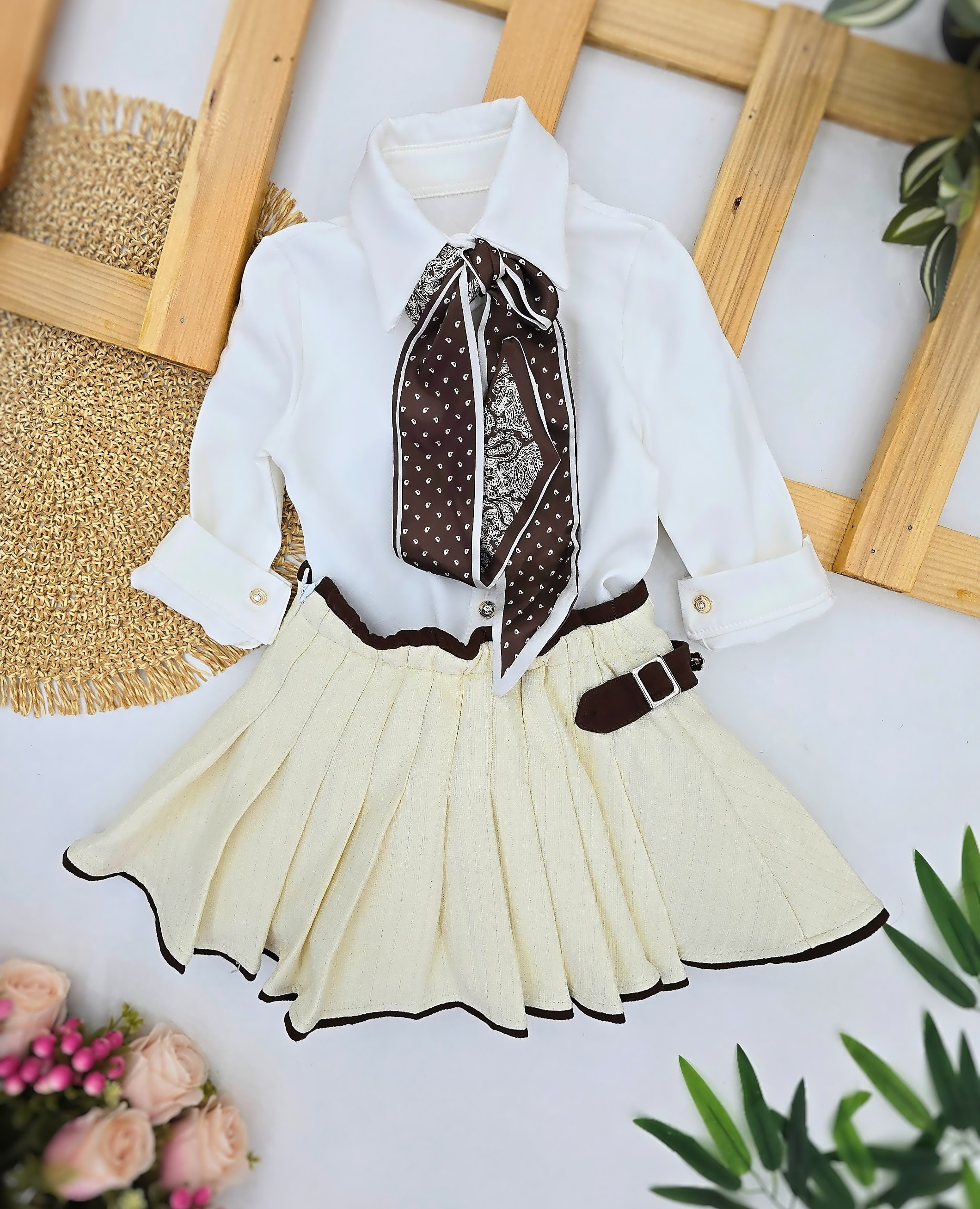 Informacije o proizvodu "Elegantni set za devojčice sa bundicom i suknjom – braon/krem"