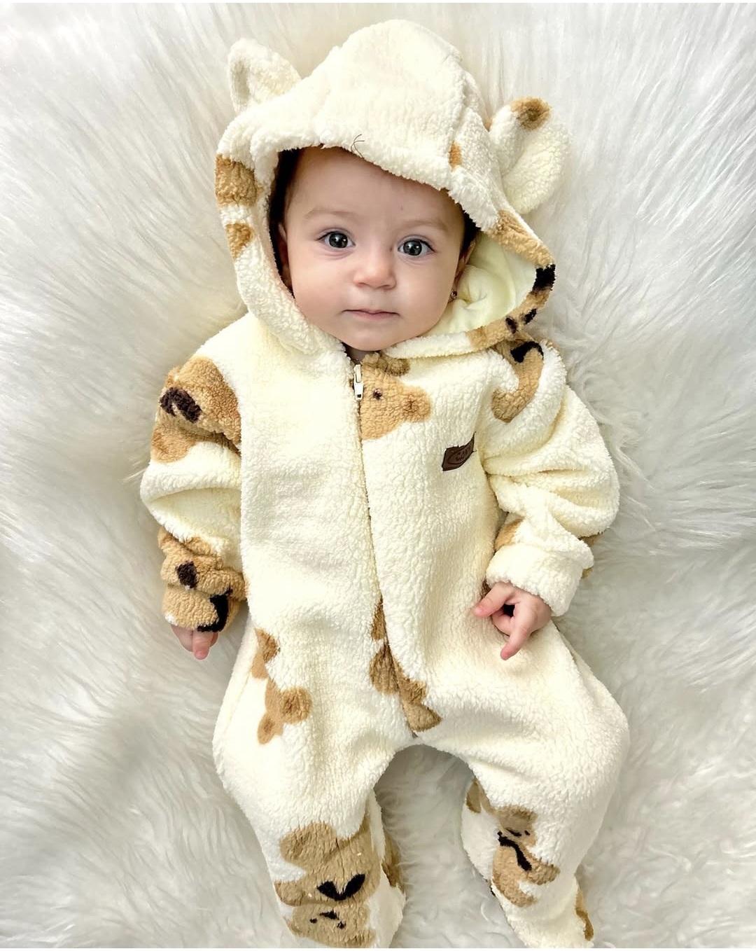 Mekani tedi skafander idealan za hladne dane! Model sa zatvorenim stopalima i kapuljačom sa ušima pruža dodatnu toplinu i neodoljiv izgled. Praktično kopčanje rajsferšlusom olakšava oblačenje, dok plišani materijal nežno greje vašu bebu. Savršen za šetnje i fotografisanje!