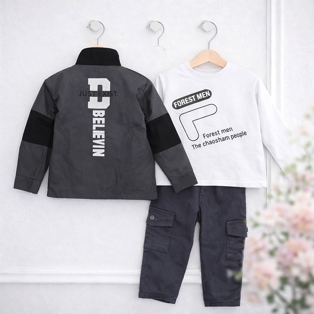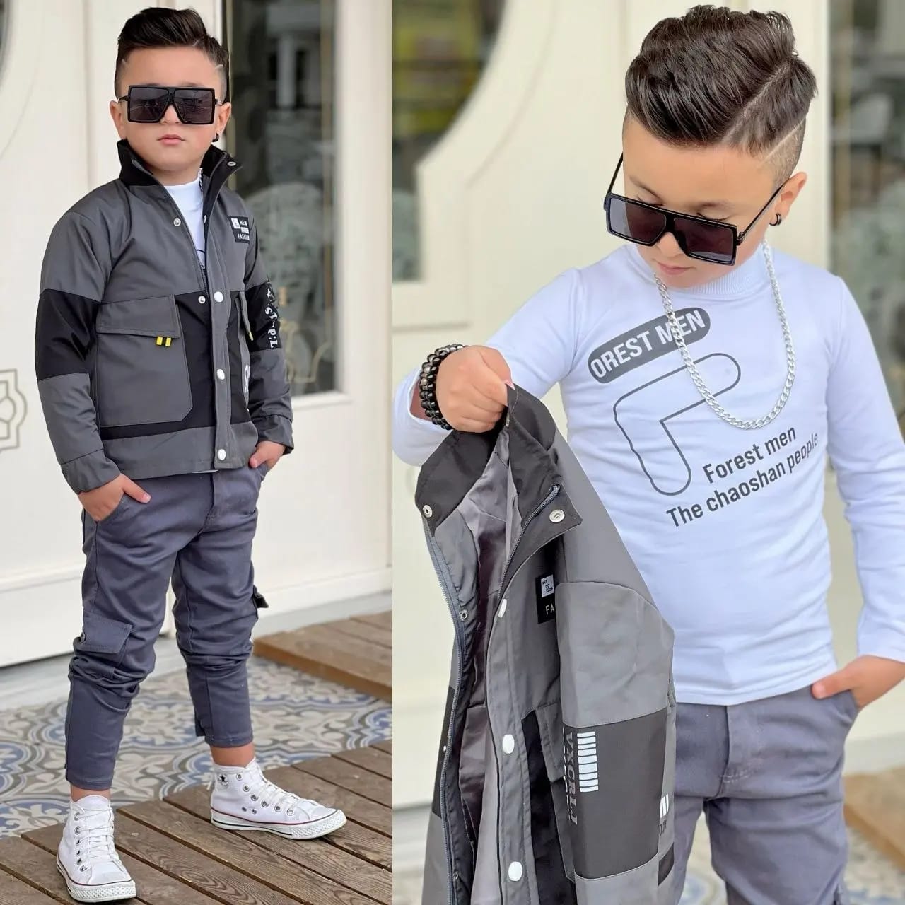 Trodeleni komplet za dečake – pantalone, bluza i jesenja jakna