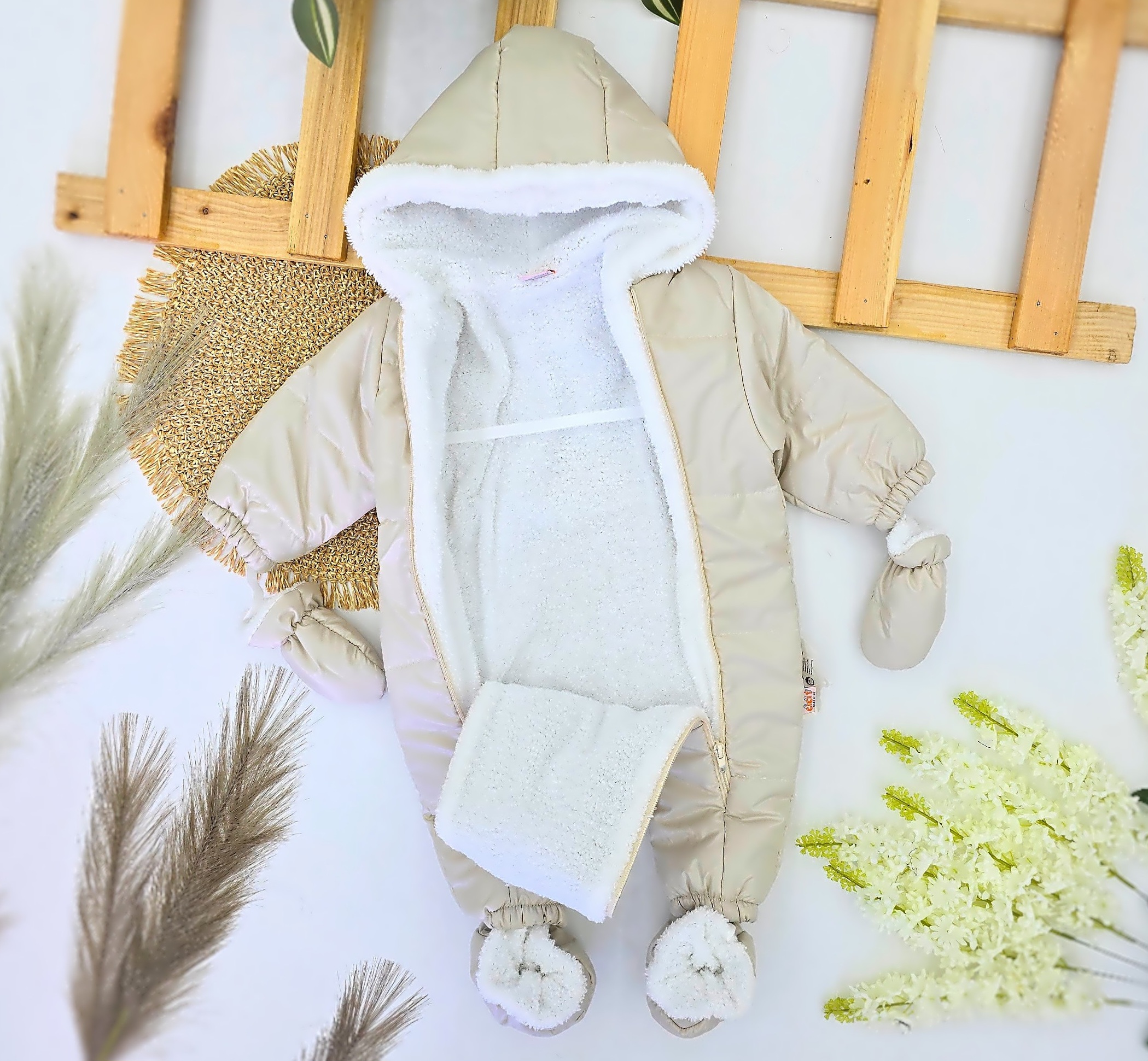 Topao zimski skafander za bebe devojčice u nežnoj bež boji, idealan za hladne dane.