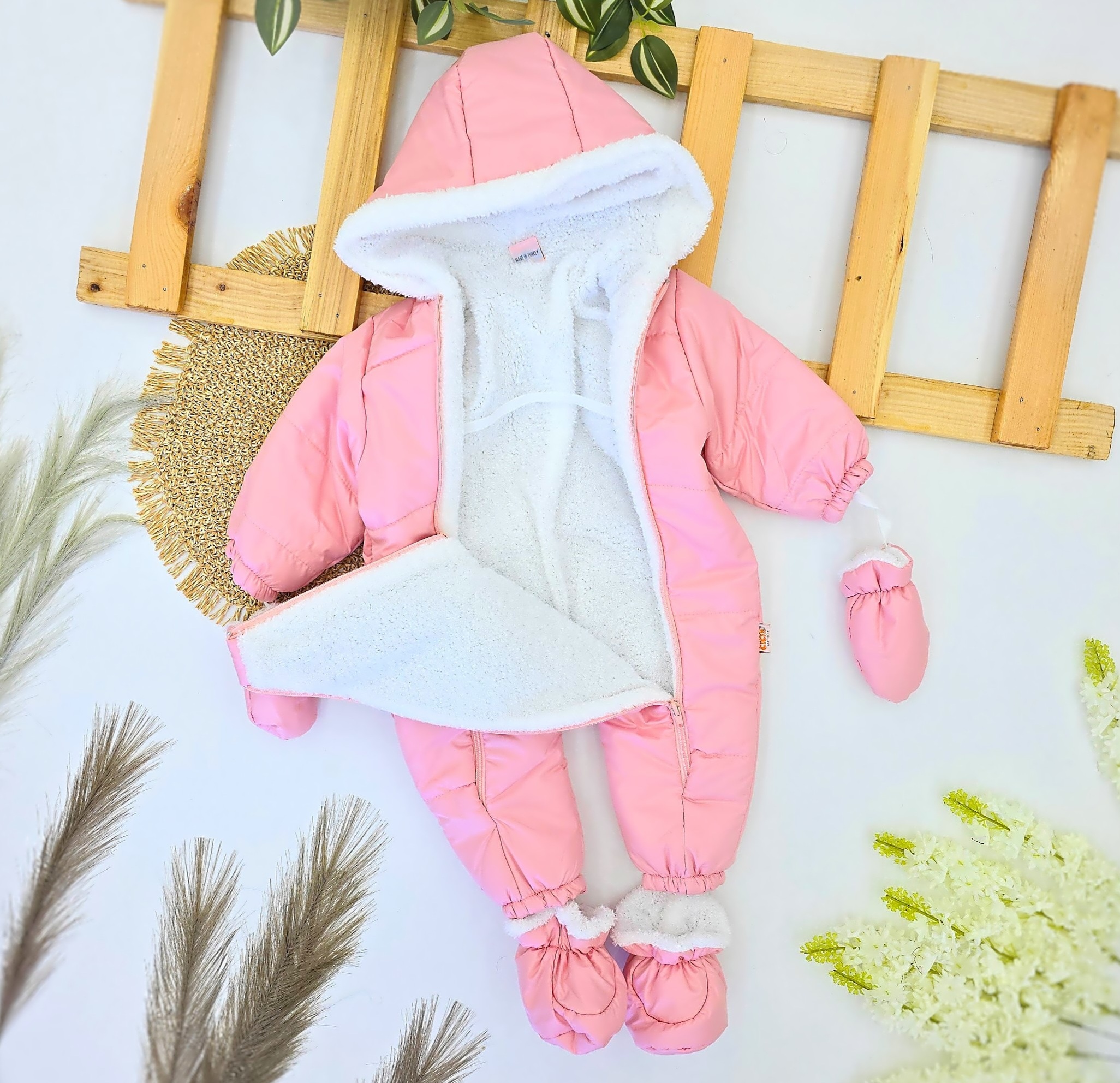 Informacije o proizvodu "Zimski skafander za bebe devojčice sa papicama i rukavicama – roze"